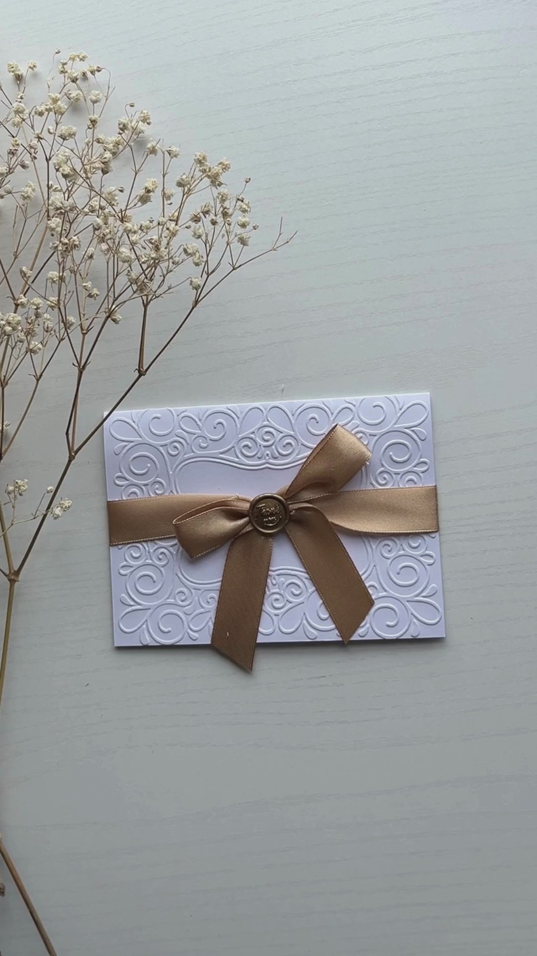 Perfecta para bodas, eventos especiales o notas personales conmovedoras, esta carta de agradecimiento transforma un simple gesto en un recuerdo. Su tamaño compacto la hace elegante y práctica, mientras que la combinación de detalles dorados y textura en relieve garantiza una presentación sofisticada.