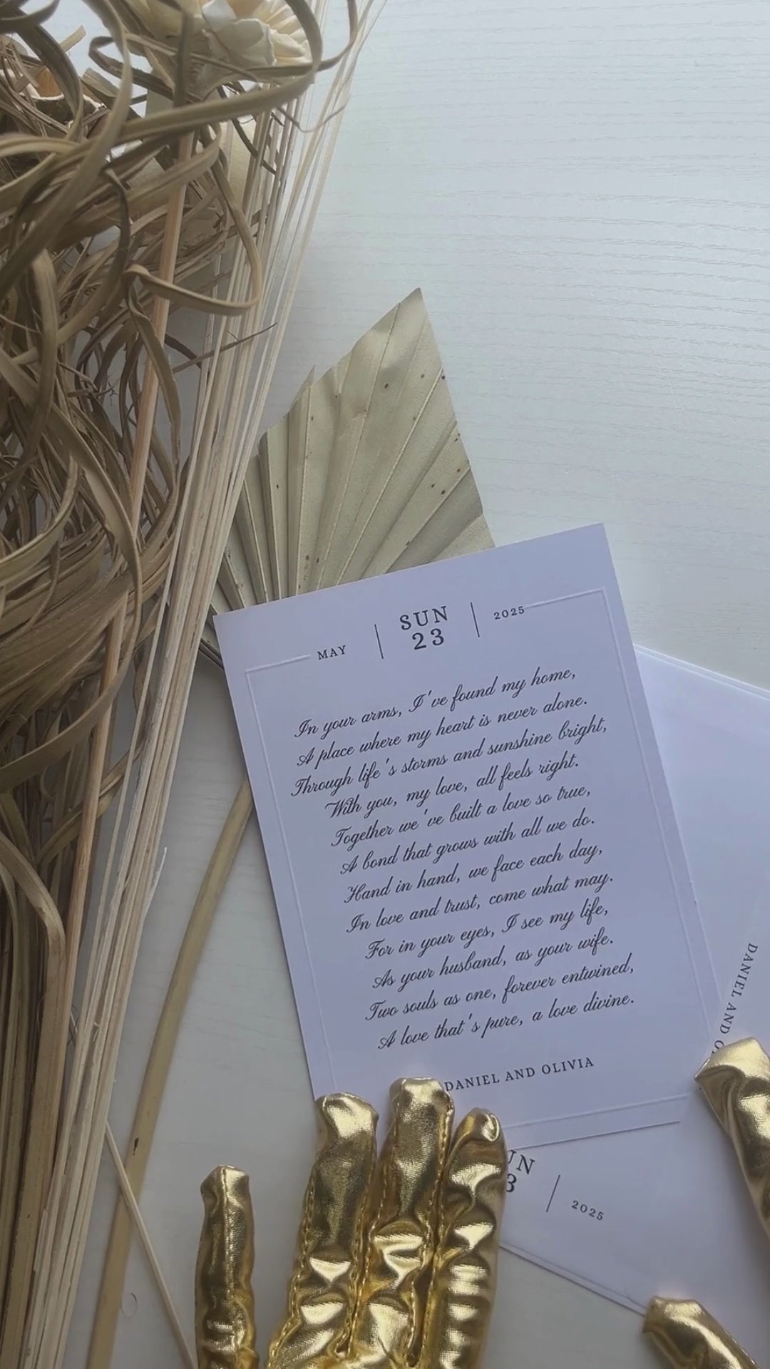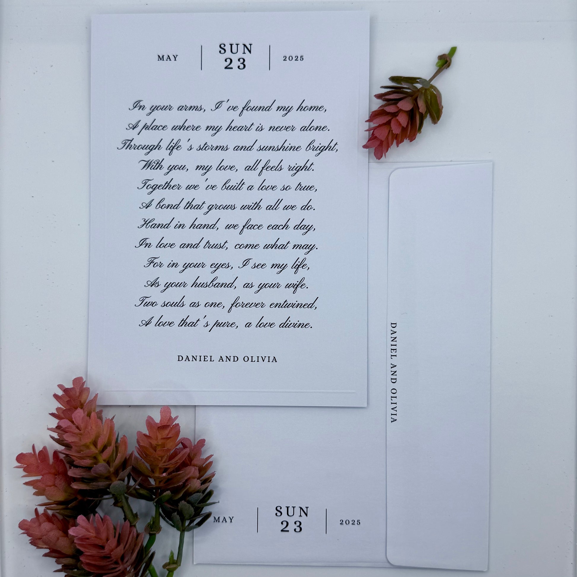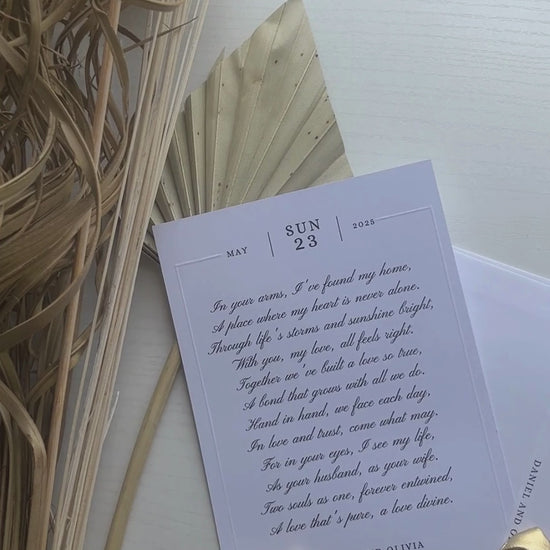 This modern, simple personalized letter exudes elegance and heartfelt emotion. With clean, minimalist typography and a soft, monochromatic design, it captures the essence of love and unity. The flowing script complements the profound, poetic message, while the date and names are subtly highlighted, adding a timeless and intimate touch. Perfect for weddings, anniversaries, or special occasions, this letter serves as a keepsake that beautifully immortalizes cherished moments.